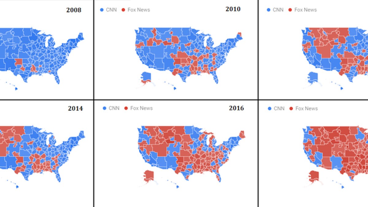 This sequence of maps, showing America turning from blue to red, elicited strong reactions on the Reddit forum where it was published last week. For some, the takeover by Fox News illustrates the demise of all that’s good and fair about news journalism. Among the comments?