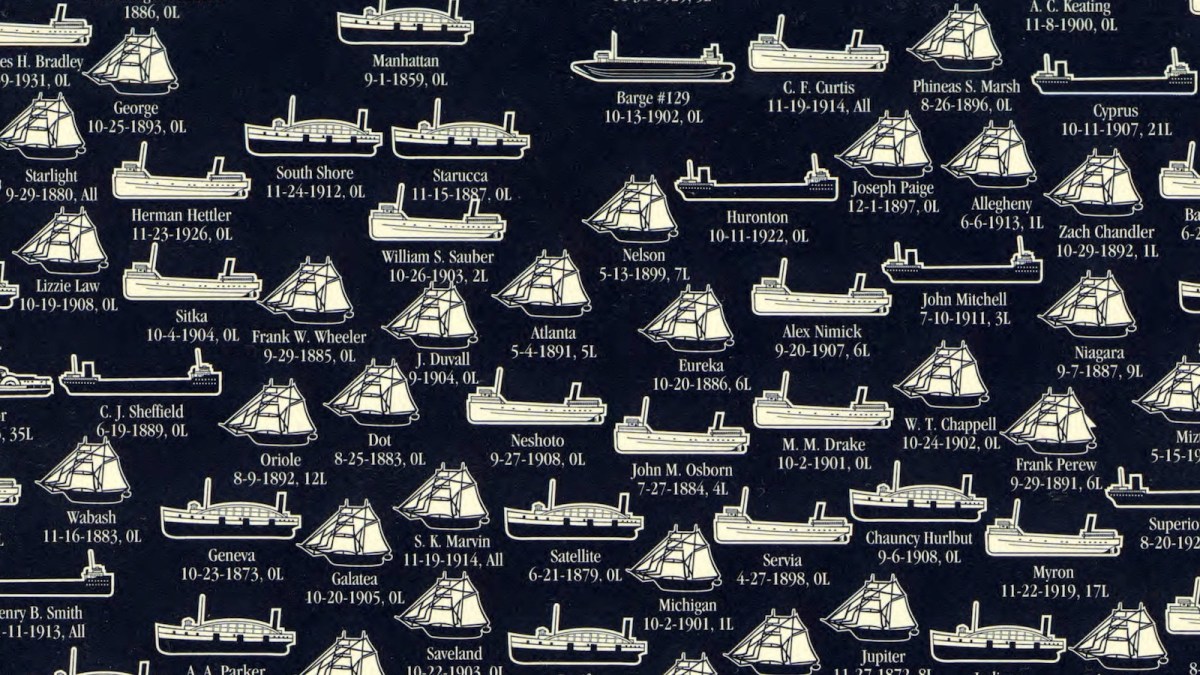 A few notable names from the ship graveyard that is Lake Michigan: the Material Service (+1936), the Reliable (+1913), and the Orphan Boy (+1885).