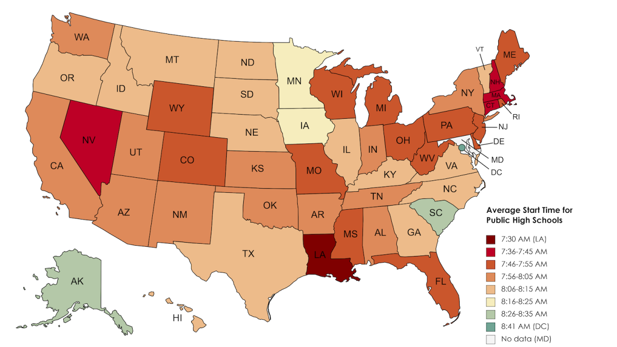 - 8:26-8:35 am — that is how late high school starts in Alaska and South Carolina. But wait…