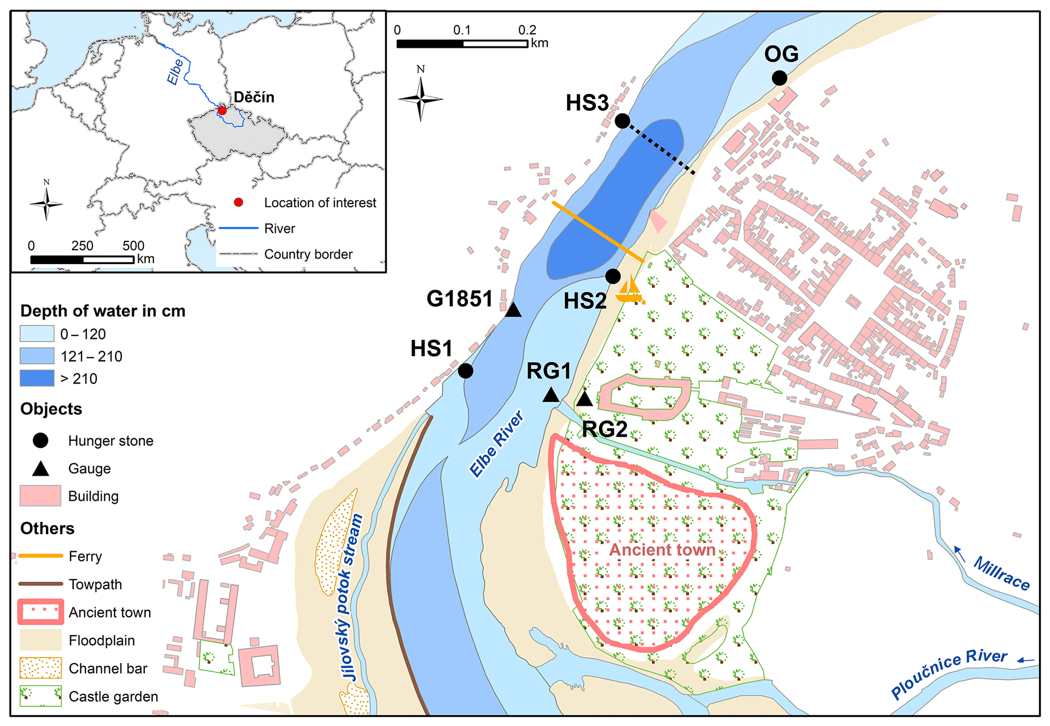 As the top map shows, the hunger stones are a phenomenon with a very limited geographic scope. More than two dozen hunger stones can be found in the Elbe, with a particular concentration on the stretch on either side of the German-Czech border.