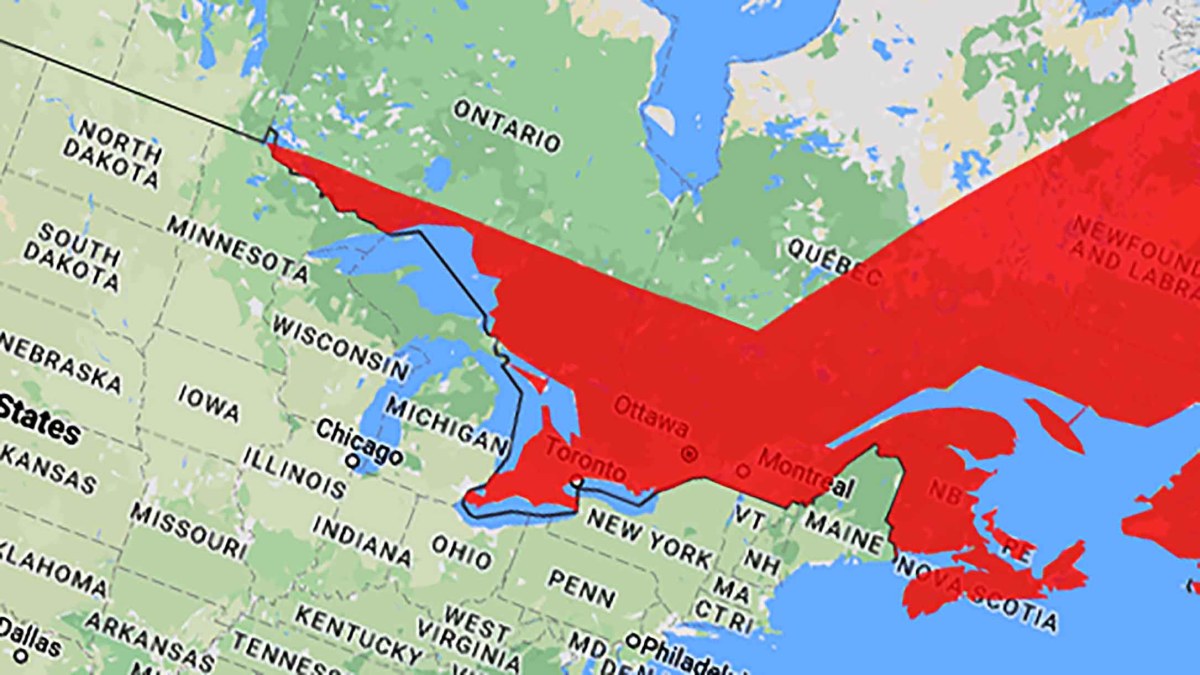 The territory between that line and the current U.S.-Canadian border comprises large parts of the provinces of Ontario and Quebec, almost all of Newfoundland and Labrador, and the entirety of the provinces of Prince Edward Island, New Brunswick and Nova Scotia. All other things being equal, those extra 600,000 square miles would make the U.S. and Canada trade places in the largest-country rankings: the U.S. would take second place after Russia, Canada would drop to fourth place, after China. Also, most of Canada’s 36 million inhabitants would be citizens of the U.S. instead of subjects of the Queen.