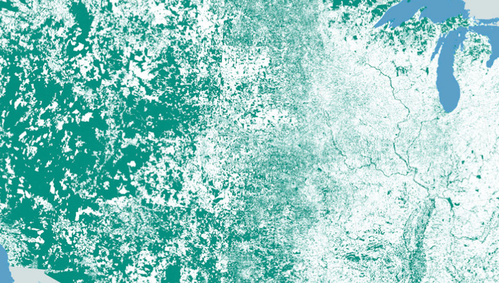 So, despite having a population of 310 million – the world’s third largest, after China and India – close to half of the U.S. is bereft of human habitation.