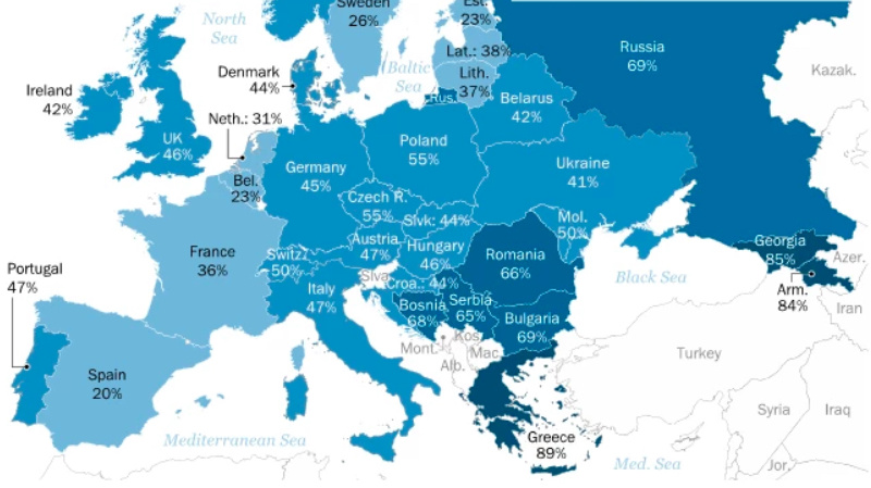 Oil-rich Norway is the first Western European country on the list. But feelings of cultural superiority are not necessarily related to a country’s economic performance, as both Europe’s richest and poorest country produce the same result: exactly half of all respondents in Switzerland and Moldova agreed with Pew Research proposition.