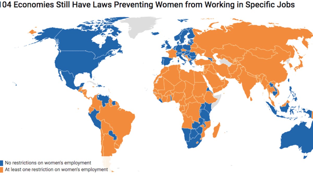 In absolute figures, this means that over 2.7 billion women are legally restricted from having the same employment choices as men.