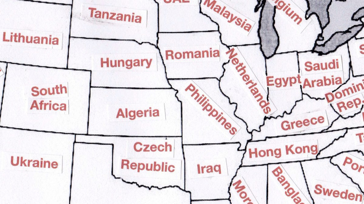 A few caveats: not all countries mentioned on the first map return on the second one; to avoid using the same country for multiple states, sometimes the country with the next-best fitting GDP is chosen, even if off by a some billions; and both data sets are in flux, so the country ranking per se has changed as well.