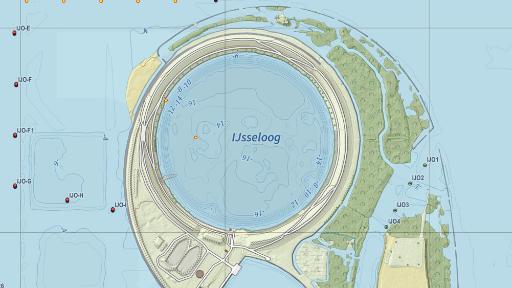 IJsseloog was started in 1996 and finished in 1999. At the centre of the island is a circular pit with a depth of about 150 feet (45 m) and about 3,280 feet (1 km) across, ring-fenced by a 10-foot (3-m) dyke. The reservoir can hold up to 880 million cubic feet (20 million cubic metres) of silt, with one third of that capacity reserved for silt from beyond the Ketelmeer. Leakage into the Ketelmeer is prevented by keeping IJsseloog’s water below the level of the Ketelmeer (which on average is less than 10 feet deep).