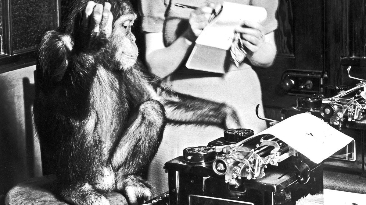 The infinite monkey theorem states that given enough monkeys and time, even while typing randomly, sooner or later the monkeys will type up the full works of Shakespeare and pretty much everything else ever written. This fun idea saw a partial incarnation courtesy of scientists at Stanford University who released a new study, promisingly titled “A Nonhuman Primate Brain–Computer Typing Interface“. They didn’t create a play-writing genius monkey, but they did get monkeys to type Shakespeare. Oh, and they typed with their minds.