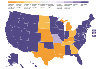 Two weeks from Tuesday, on April 28, the Supreme Court will hear arguments over whether same-sex marriage is a constitutional right that should be extended to every American in all 50 states. In the two years since the Court struck down the provision in the Defense of Marriage Act (DOMA) defining marriage along strictly heterosexual lines, the number of states where gays may marry has risen from 10 to 37. Here is the national picture: