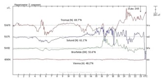 Vanselow’s conclusions are based on correlations between two solar storms on December 20/21, 2015 and December31, 2015/January 1, 2016 and the strandings that occurred in January. Analyzing magnetometer data from a station at Solund, Norway, they were able to calculate the locations of anomalies produced by the flares.