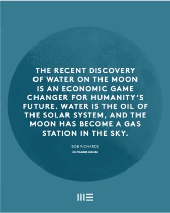 Moon Express is a privately funded commercial space company. In 2017, they will be the first private company to land on the moon. Their goal is to mine the moon’s resources and figure out how to use the lunar surface as a stepping stone for exploring the rest of the universe, according to Co-Founder and CEO Dr. Bob Richards: