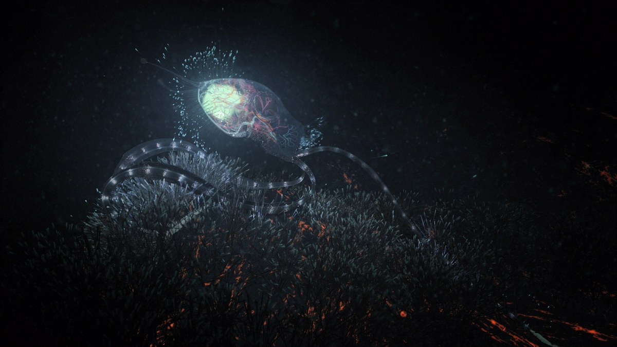Since exploring a liquid surface is a new challenge for NASA, this proposal, from Mason Peck and Robert Shepherd of Cornell University, is of interest. The scientists wrote, “Optionally, the skin of the robot will be a stretchable, electroluminescent display for illuminating the local marine environment,” enabling the rover to take images as it plods along. What’s bizarre is that this model closely resembles the alien octopus from the sci-fi movie Europa Report.
