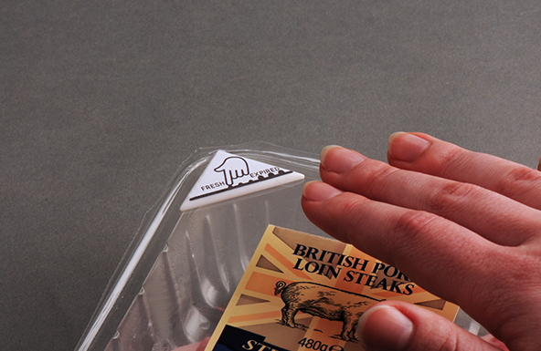 The label is comprised of a layer of gelatin set above a bumpy plastic sheet. Initially, the gelatin is solid and the bumps cannot be felt. When it starts to decay, however, it liquifies. Since gelatin is a protein and it decays at the same rate as protein-based foods, being able to feel the bumps means that the gelatin has liquified and the food has expired. In a sense, the label “copies” what the food in the packaging is doing and provides a real time “quality status” update, that is much more accurate than printed labels.