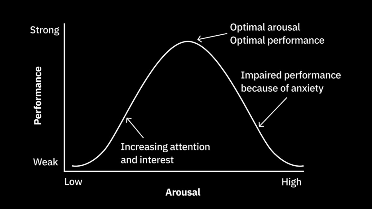 Today, this graph is known as the Yerkes-Dodson law or the arousal-performance curve.