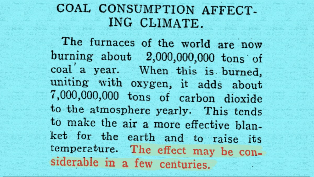 Clipping from the 1912 article ‘Remarkable Weather of 1911: The Effect of the Combustion of Coal on the Climate — What Scientists Predict for the Future’ in Popular Mechanics.