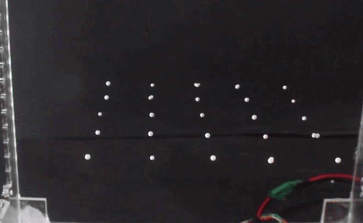 The HAT demonstration takes place inside a box-like array with the 256 single-centimeter speakers arranged on walls opposite each other over a reflective base. The “particles” they’re moving are styrofoam balls from 1-3 millimeters in diameter, and HAT is currently capable of moving up to 25 of them at a time.