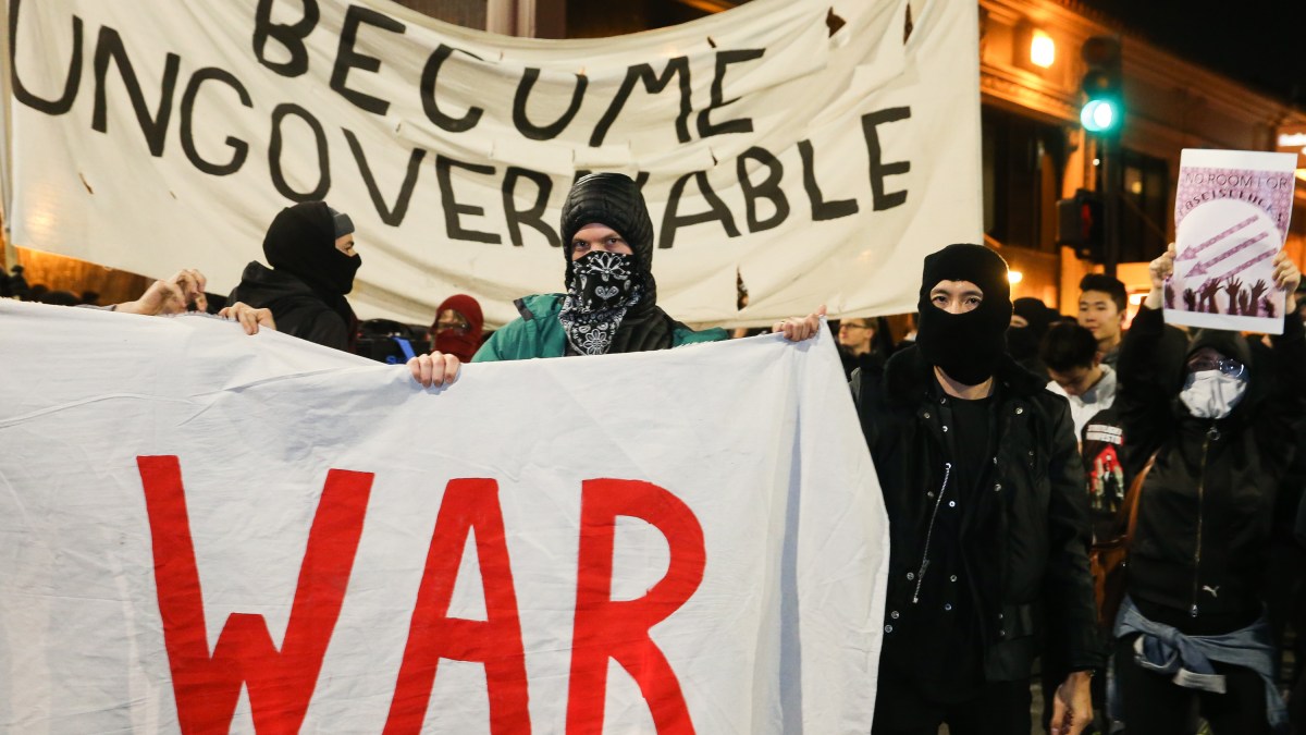 Antifa protesters often wear black masks and black clothing – a “black bloc” force. Newsweek describes this as a tactic for anarchist protest which doesn’t necessarily represent one group. It should be noted that antifa is far from just one organization and is a rather decentralized force (much like its alt-right counterpart). Antifa also includes militant groups outside of ARA. There’s the Hoosier Anti-Racist Movement (HARM) in Indiana and Redneck Revolt and others.