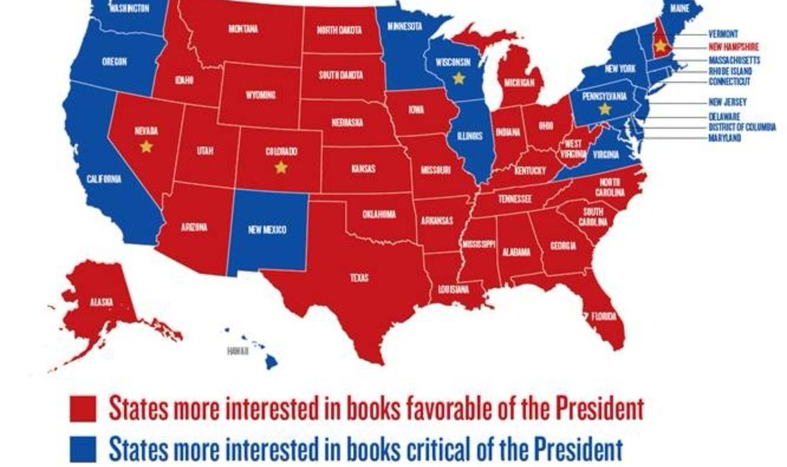 Barnes & Noble recently released data to CNBCshowing a 57-percent spike in political book sales compared to 2017, as well as a map that shows how the political book sales of each state are strongly correlated with how that state voted in the 2016 presidential election. In other words, red states buy more books favorable of President Donald Trump, while blue states seem more interested in books critical of Trump—although there are five outliers. Book sales in New Hampshire, Wisconsin, Nevada, Colorado and Pennsylvania contradicted how they voted in 2016. It’s unclear why.