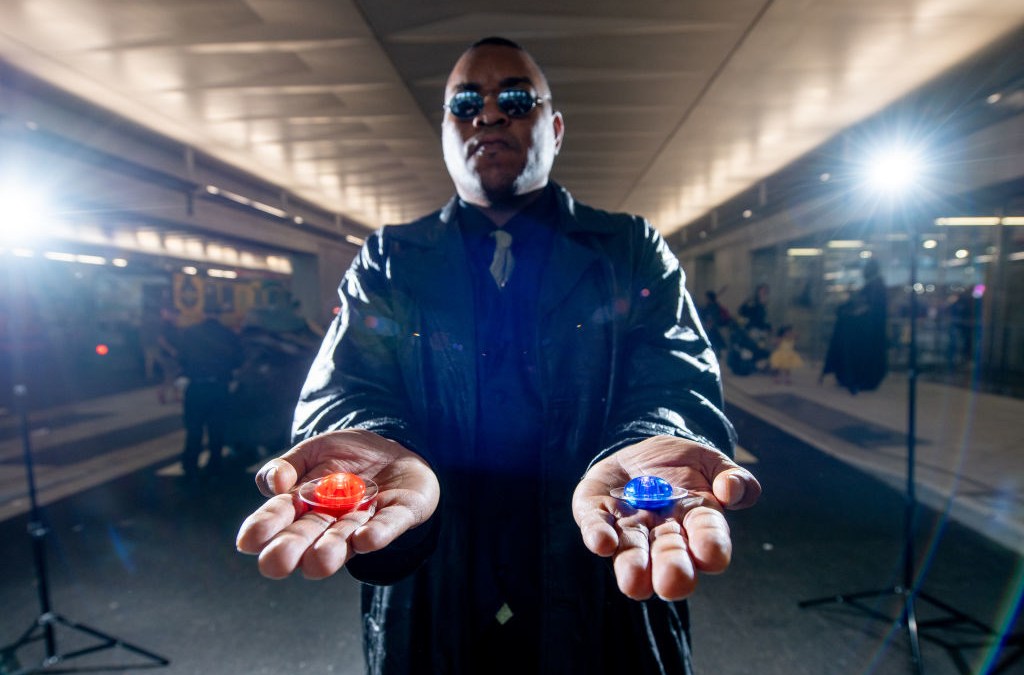 That’s Julian Walker’s take on this phenomenon. In a Medium article that’s been circulating—garnering a retweet from William Gibson and praise from Jason Silva—Walker recalls feeling validated by the red pill scene in the 1999 movie. Morpheus offers Neo (Keanu Reeves) an opportunity to break the bondage of mental servitude. Capped by the adrenaline-fueled screams of “Wake Up” by Rage Against the Machine, this theme inspired a wave of Gen Xers to combat the influence of Big Corporate Interests on Big Government.