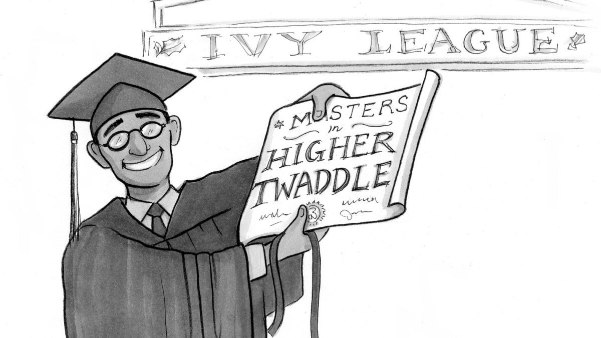 2. Robinson’s complaint that colleges teach students to “master… twaddle” and thereby “to think… badly,” focus mainly on the humanities, but worse twaddle is taught in fields whose ideas are less ivory-tower quarantined.
