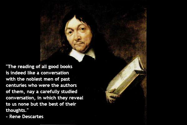 “The reading of all good books is indeed like a conversation with the noblest men of past centuries who were the authors of them, nay a carefully studied conversation, in which they reveal to us none but the best of their thoughts.” – Rene Descartes