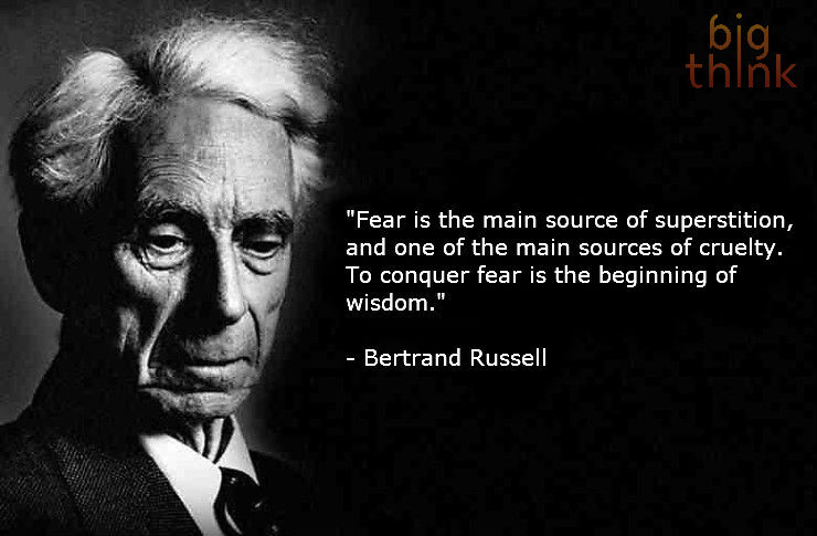 “Fear is the main source of superstition, and one of the main sources of cruelty. To conquer fear is the beginning of wisdom.” – Bertrand Russell