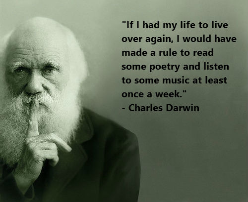 "If I had my life to live over again, I would have made a rule to read some poetry and listen to some music at least once a week." - Charles Darwin