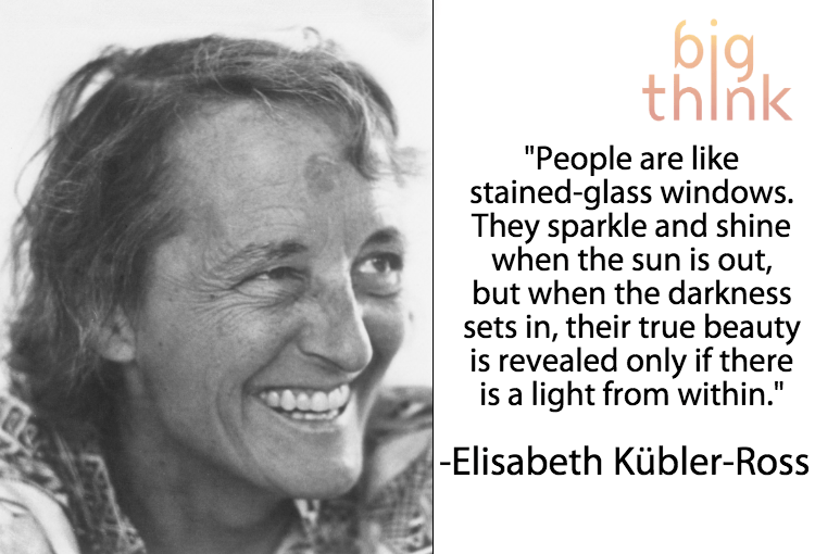 Dr. Elisabeth Kübler-Ross (1926-2004) was an American psychiatrist most famous for her book On Death and Dying which first introduced the five stages of grief. Born in Switzerland, Kübler-Ross graduated from the University of Zürich medical school in 1957 and moved to the United States with her American husband. There, she took up psychiatry and became heavily invested in the study of death and grieving. At various times during her life, Kübler-Ross was a proponent of hospice care, spiritualism, mediumship, and holistic healing. She died in 2004 after a series of strokes nine years prior had rendered her partially paralyzed.