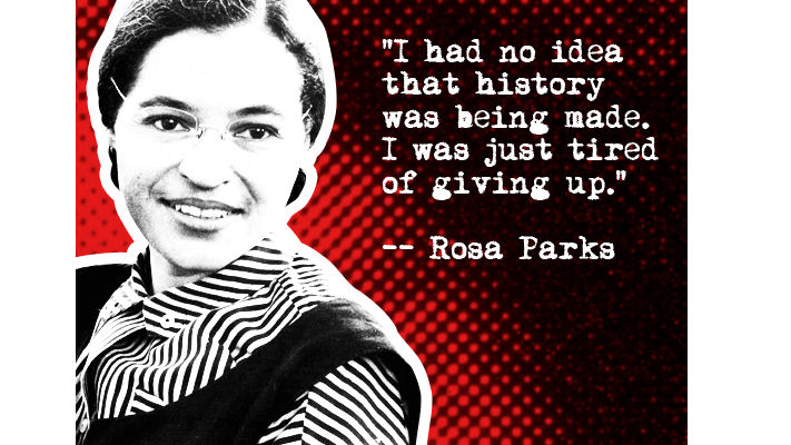 “I had no idea that history was being made. I was just tired of giving up.”– Rosa Parks (born on this date in 1913)